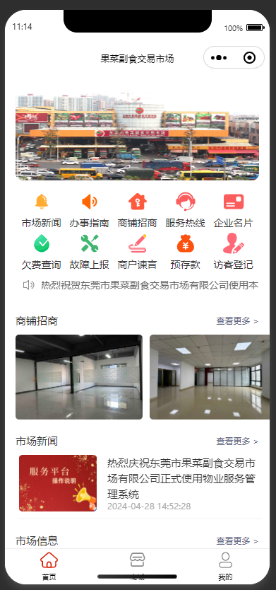 在线服务平台(小程序)是我公司通过大量的数据分析与市场调研,基于微信小程序研发的,可以和电脑端物管王系统一体化管理,主要目的是为了满足管理方管理上的便利性,如及时发布各类新闻通知、办事指南、便民电话、商铺出租动态等等,同时满足业主及时向管理反馈诉求,如在线报修、在线投诉、在线缴费,查看合同信息和缴费记录等等。