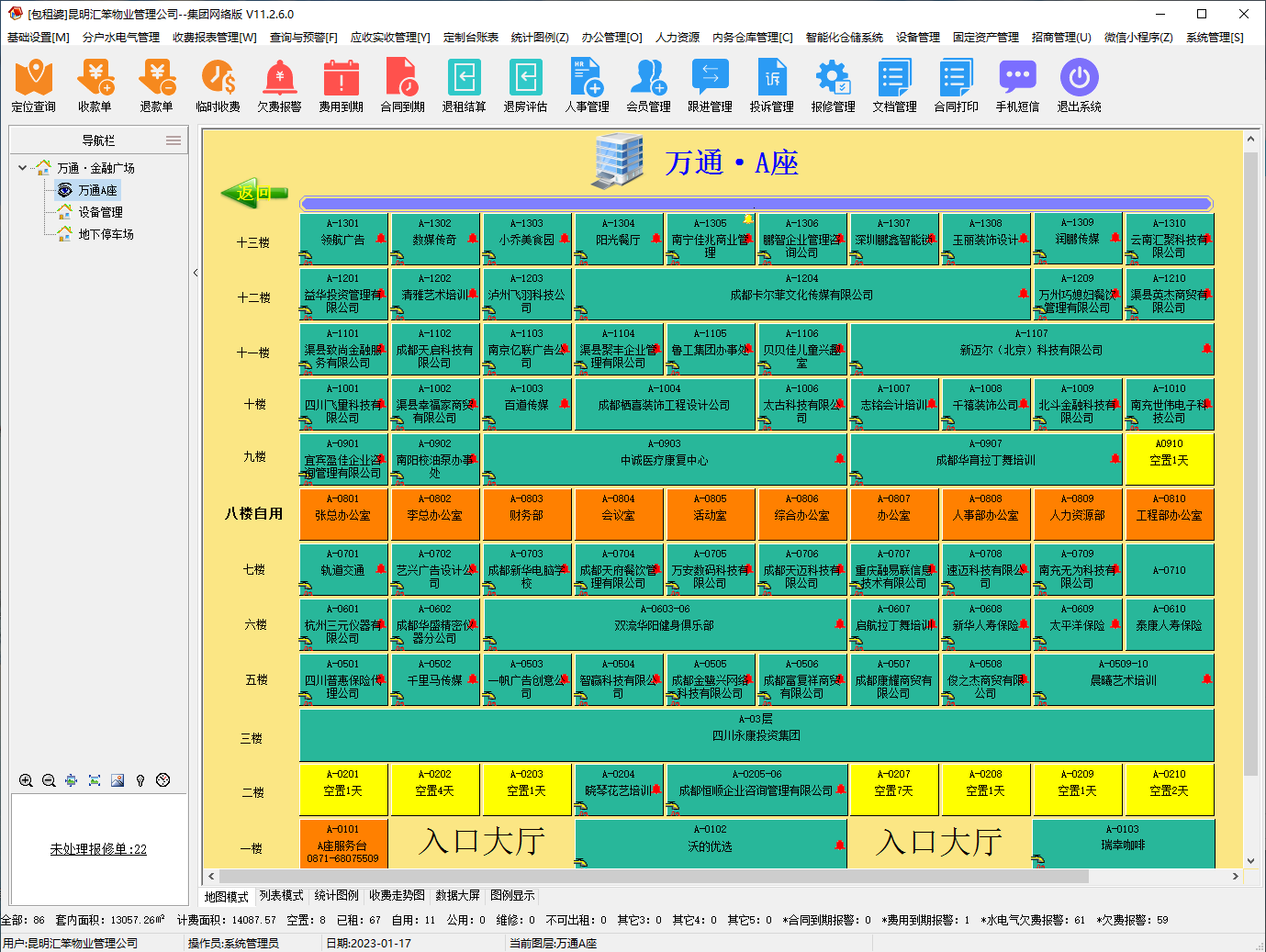 写字楼租赁信息化管理平台可对管理写字楼中的办公室、房屋、仓库、车位、水电、食堂等项目进行信息化综合管理。